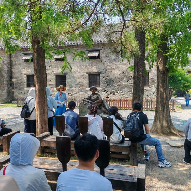 臺(tái)兒莊古城不僅是千年運(yùn)河古城,更是臺(tái)兒莊大戰(zhàn)重要遺址地,城內(nèi)留存 53 處“二戰(zhàn)”遺址。在大戰(zhàn)遺址紀(jì)念園,昔日的槍炮聲雖已沉寂,但英雄的氣概仍激蕩長(zhǎng)空。輕撫著彈痕累累的古城墻磚,指尖仿佛感受到歷史的余溫,這些彈孔不是冰冷的凹陷,是先烈用生命刻下的信仰圖騰。黨員們漫步古城石板路,尋覓戰(zhàn)爭(zhēng)遺跡,聆聽(tīng)講解員講述戰(zhàn)斗故事,近距離觸摸歷史,體會(huì)先輩保家衛(wèi)國(guó)的巨大犧牲。
